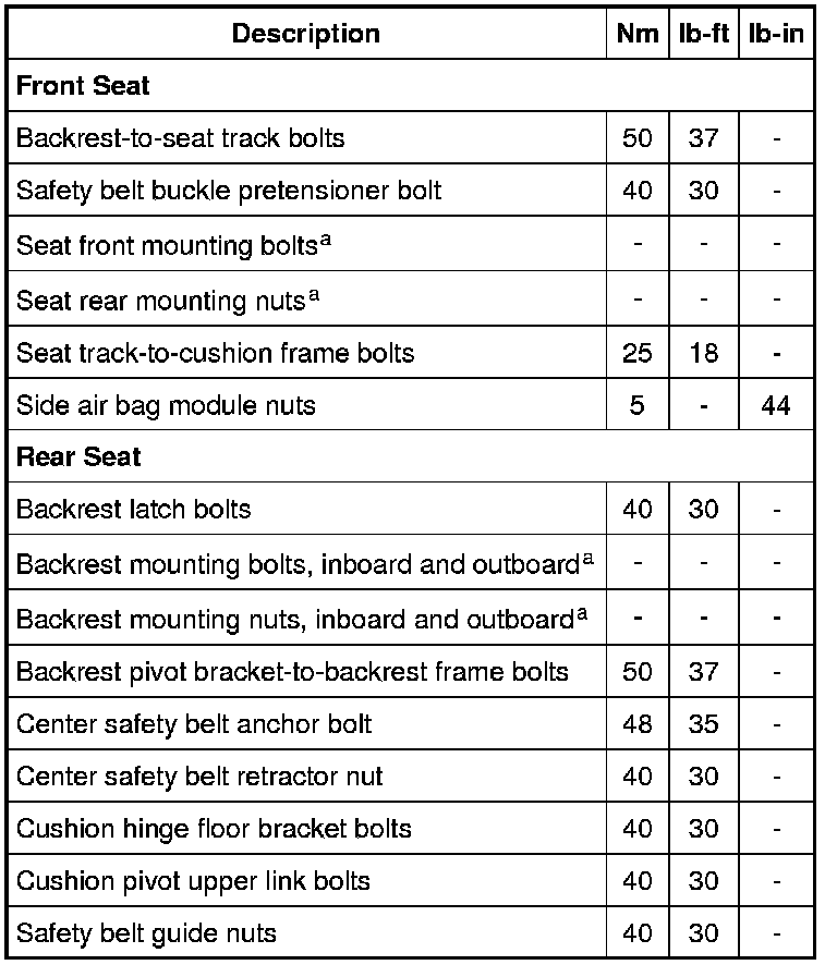 Seats: Specifications
