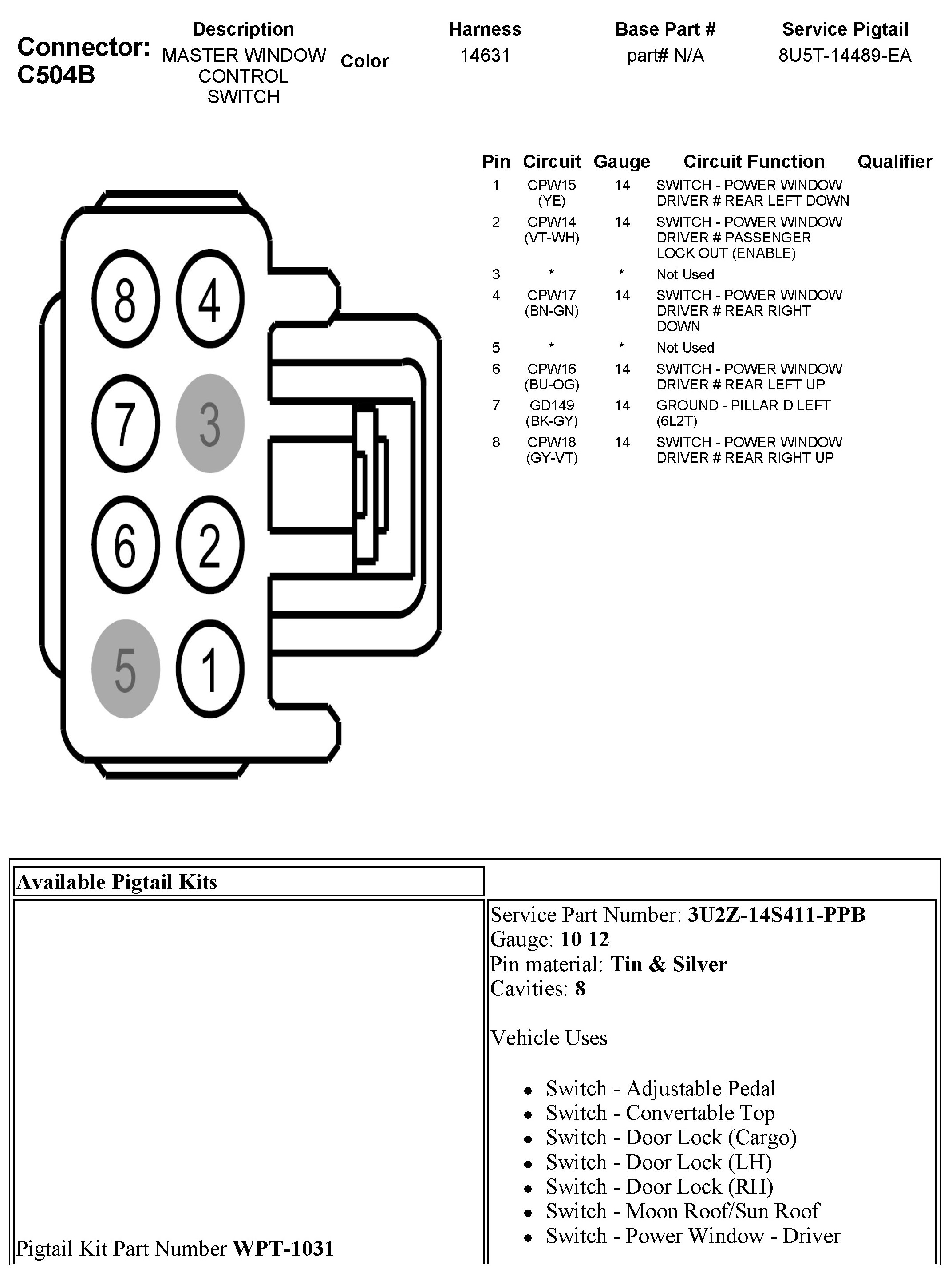 C504B Master Window Control Switch