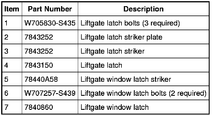 Liftgate Handle, Lock and Latch - Exploded View