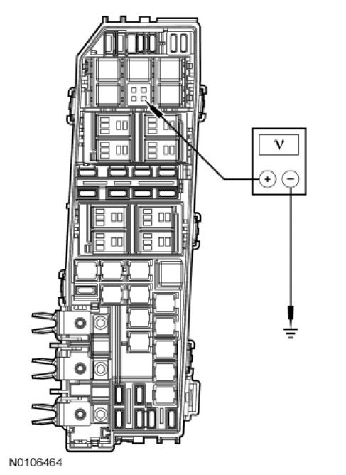 - Measure the voltage between ground and the auxiliary coolant flow pump relay socket, circuit CBK03 (GY).