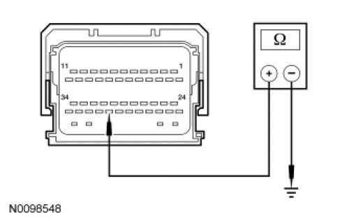 - Measure the resistance between ground and PCM C175T-42, circuit CH307 (GY/BU), harness side.