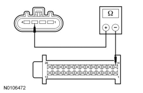 - Measure the resistance between blower motor speed control C297-3, circuit VH101 (WH/VT), harness side and HVAC module C2356A-14, circuit VH101 (WH/VT), harness side.