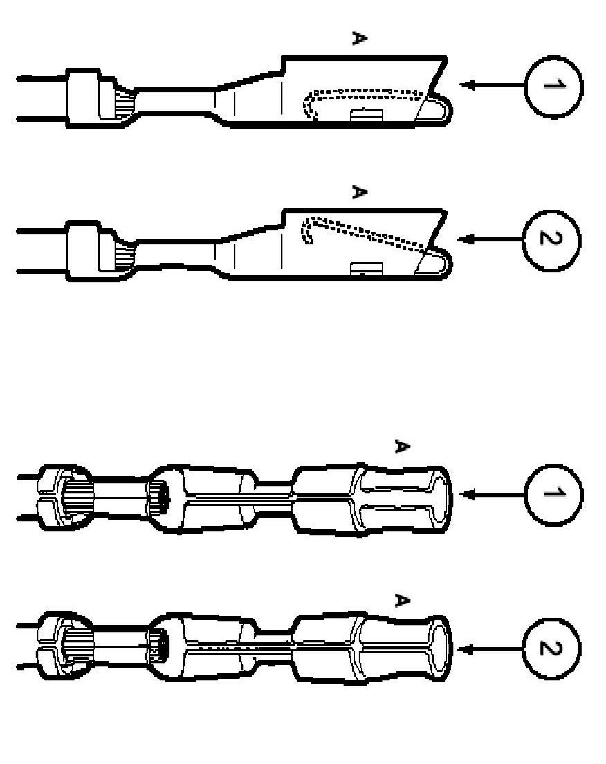 - Use heat shrinkable tubes marked with ES-1 (16-22 GA) or ES-2 (10-18 GA) to seat wire splice.