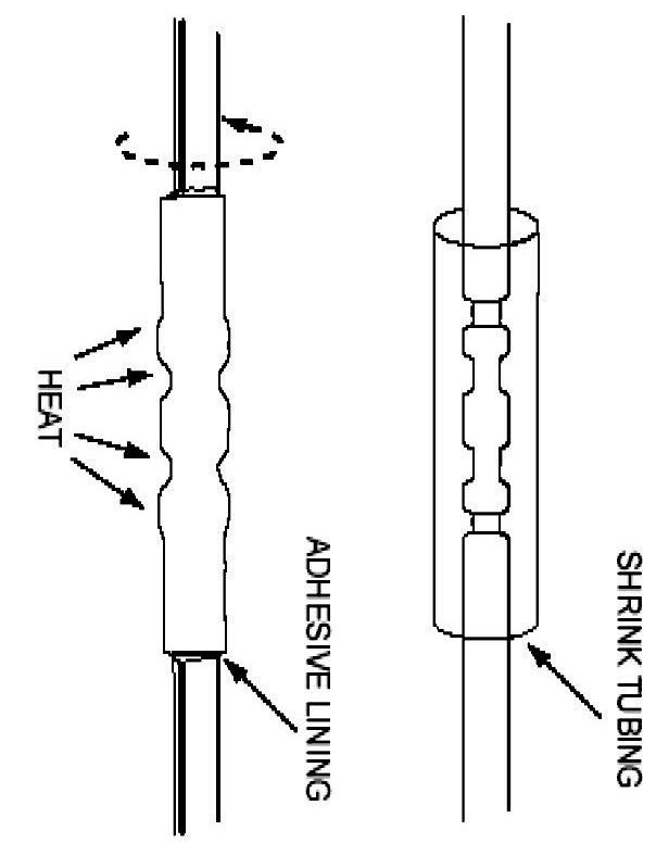 13. Use shielded heat gun to heat the repaired area until adhesive flows out of both ends of the heat shrink tubing.