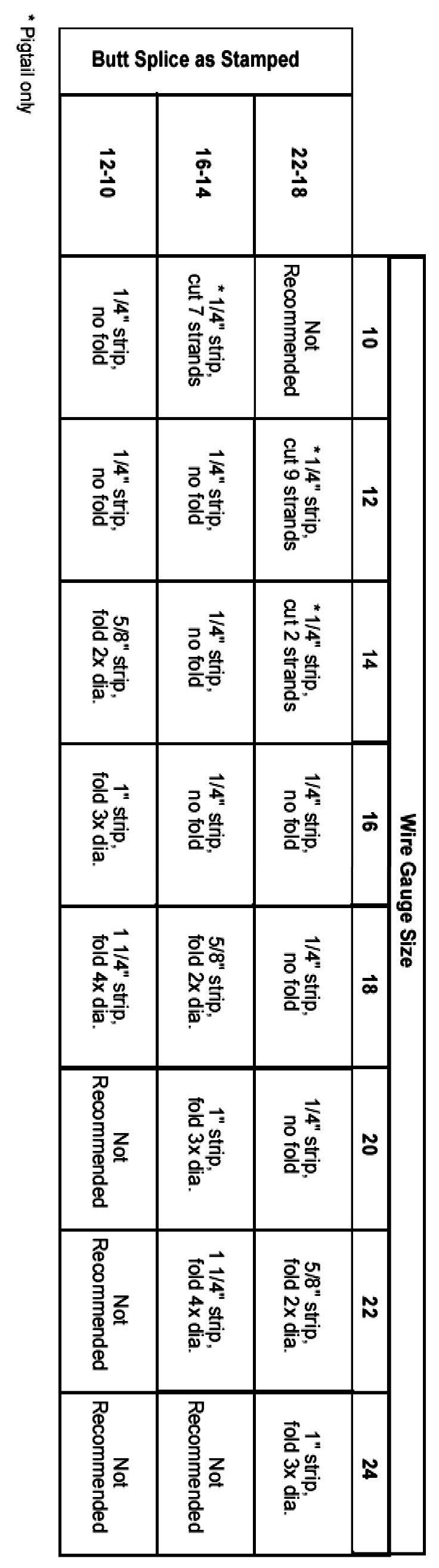 Recommended splicing method - Crimp (For 10-22 AWG Diameter Wire to Like Wire Diameter)