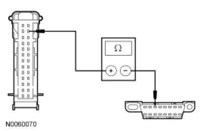 - Measure the resistance between the HVAC module C2356a-25 or C2357a-25, circuit VDB06 (GY/OG), harness side and the Data Link Connector (DLC) C251-3, circuit VDB06 (GY/OG), harness side.