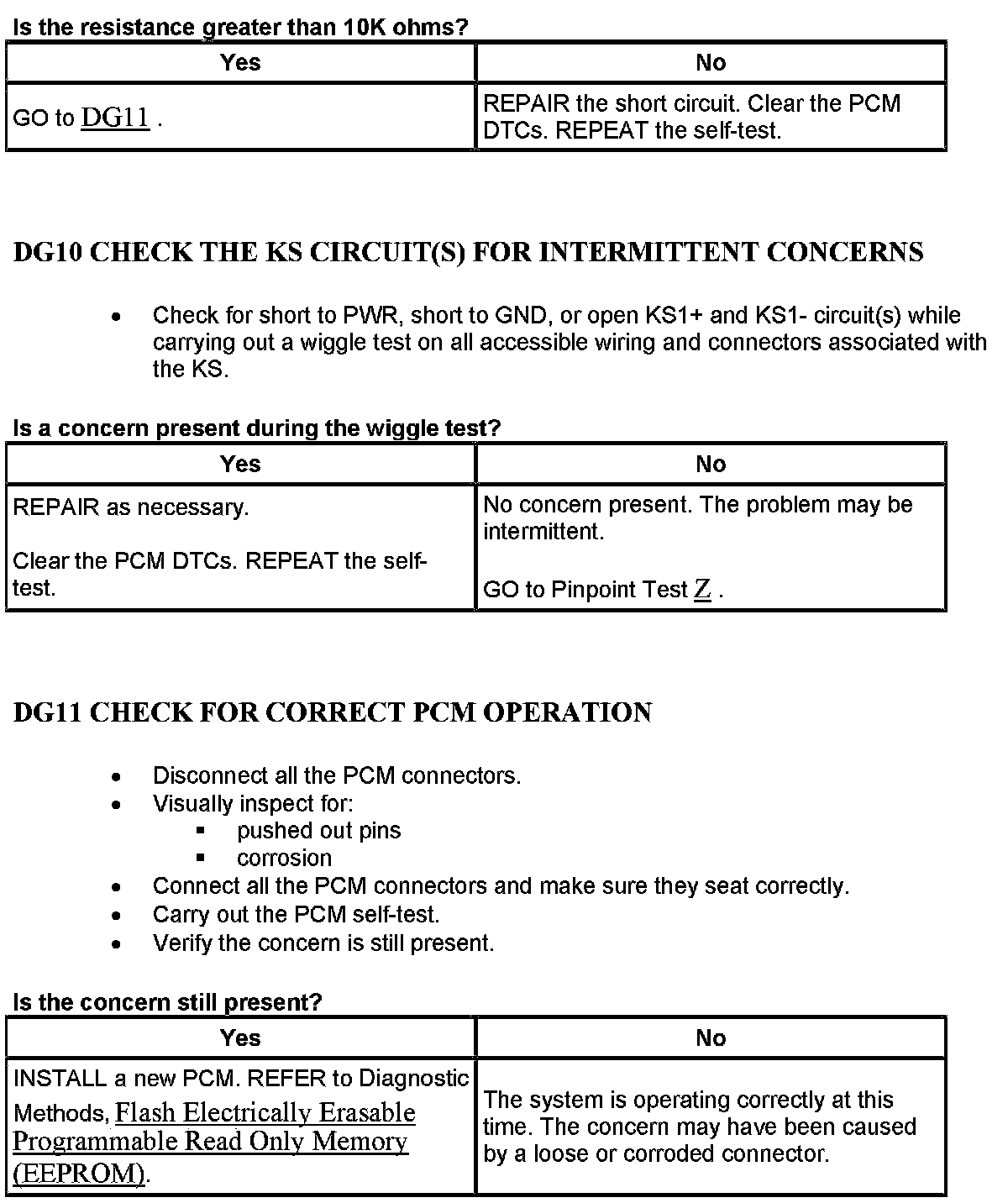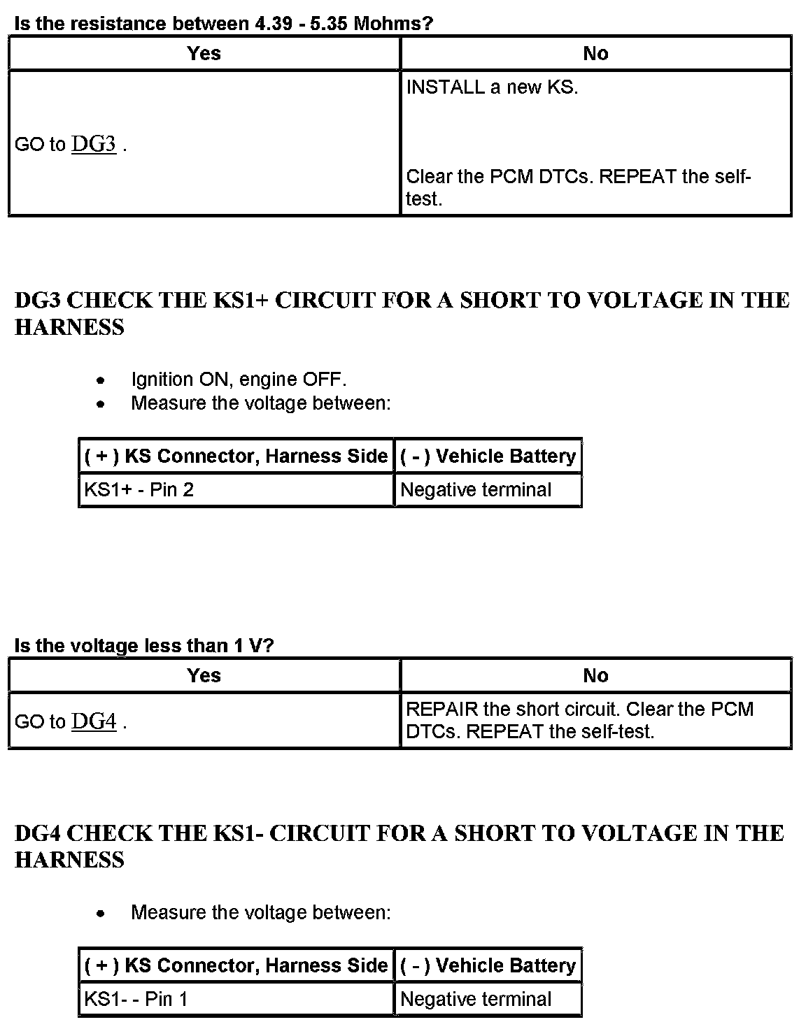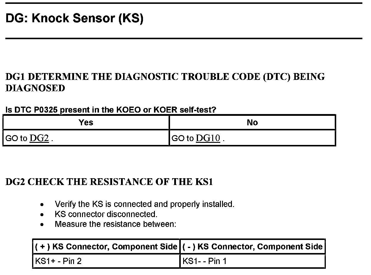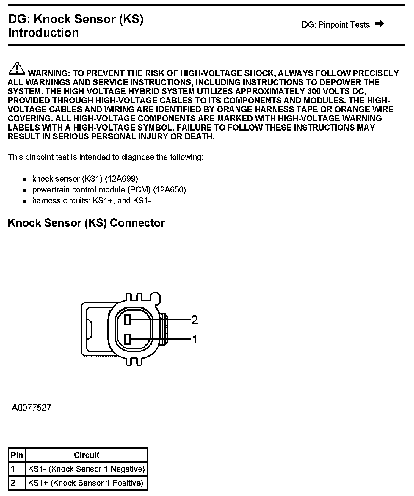 PINPOINT TEST DG: KNOCK SENSOR (KS)