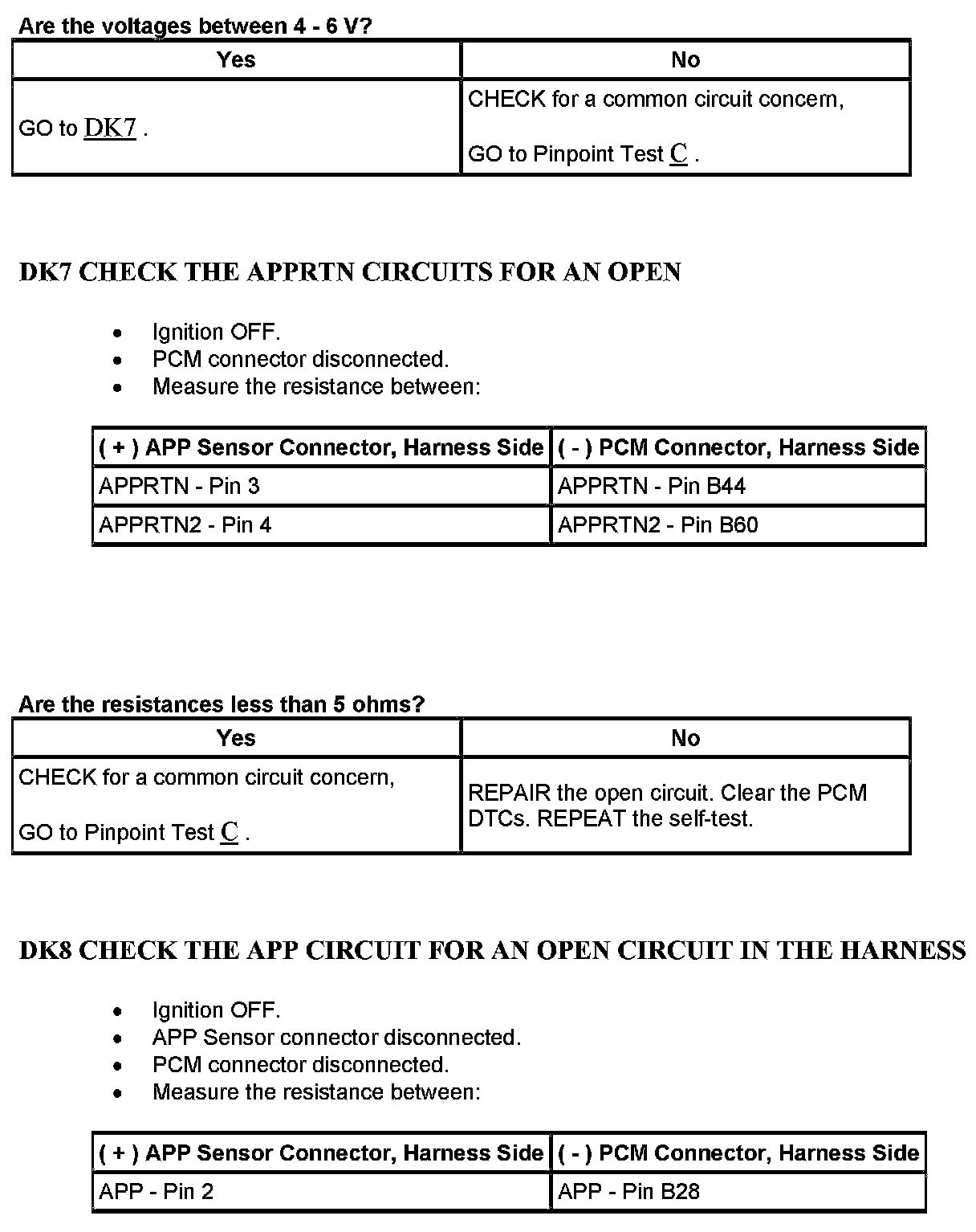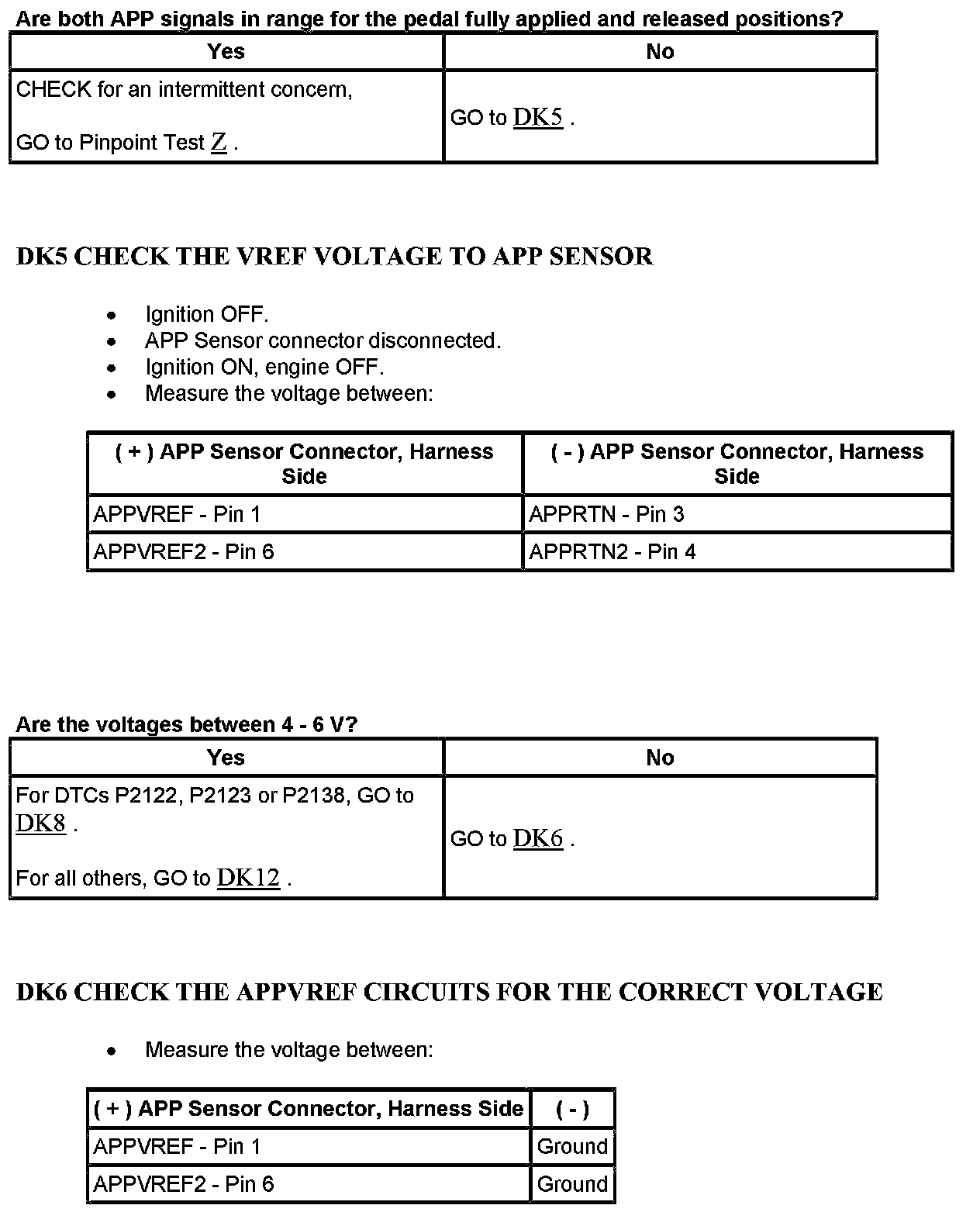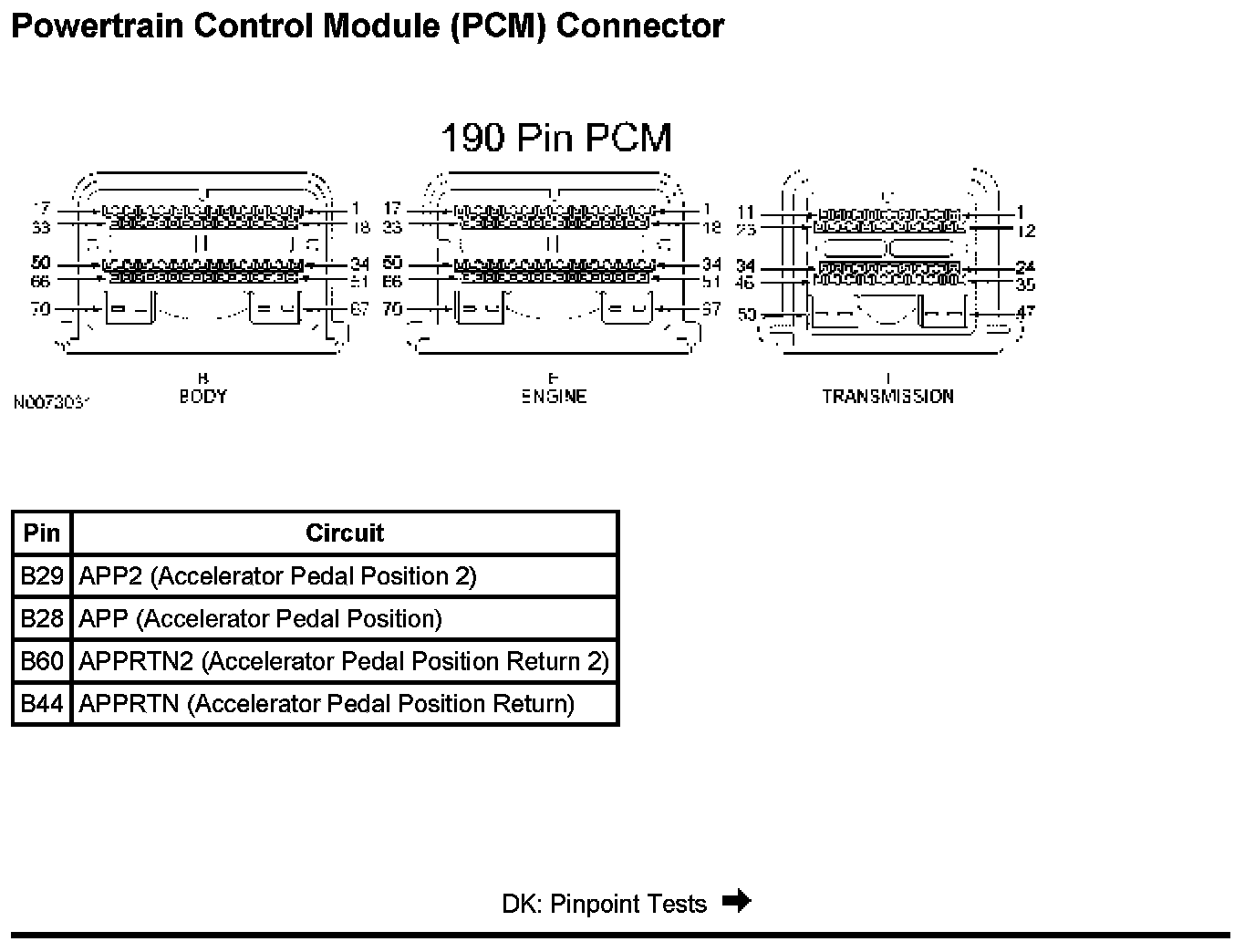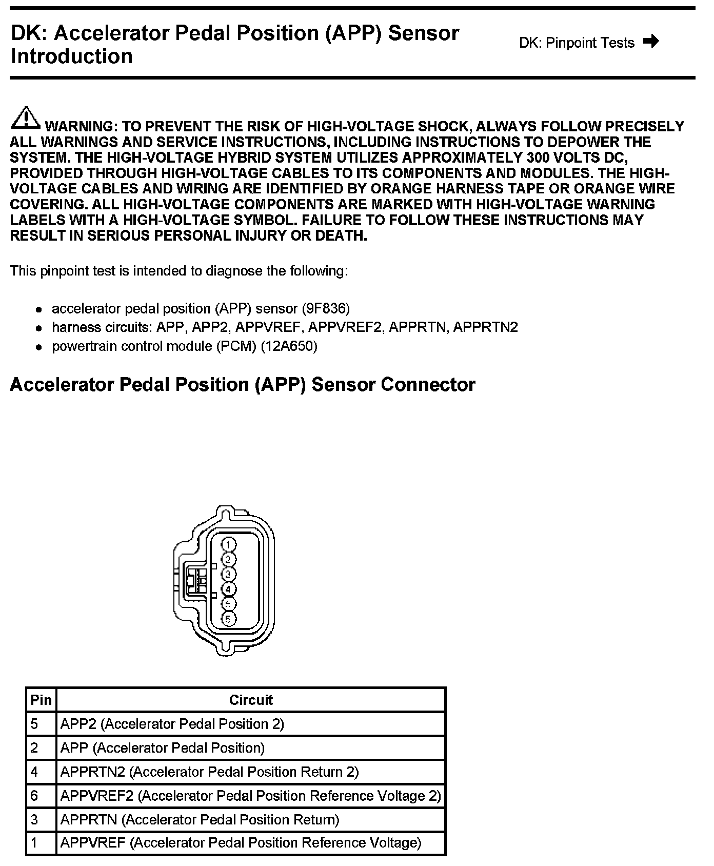 PINPOINT TEST DK: ACCELERATOR PEDAL POSITION (APP) SENSORWarning And Accelerator Pedal Position (APP) Sensor Connector: