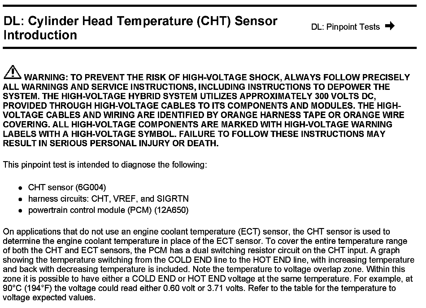 PINPOINT TEST DL: CYLINDER HEAD TEMPERATURE (CHT) SENSORWarning: