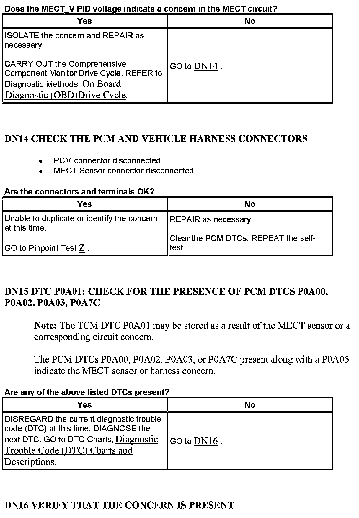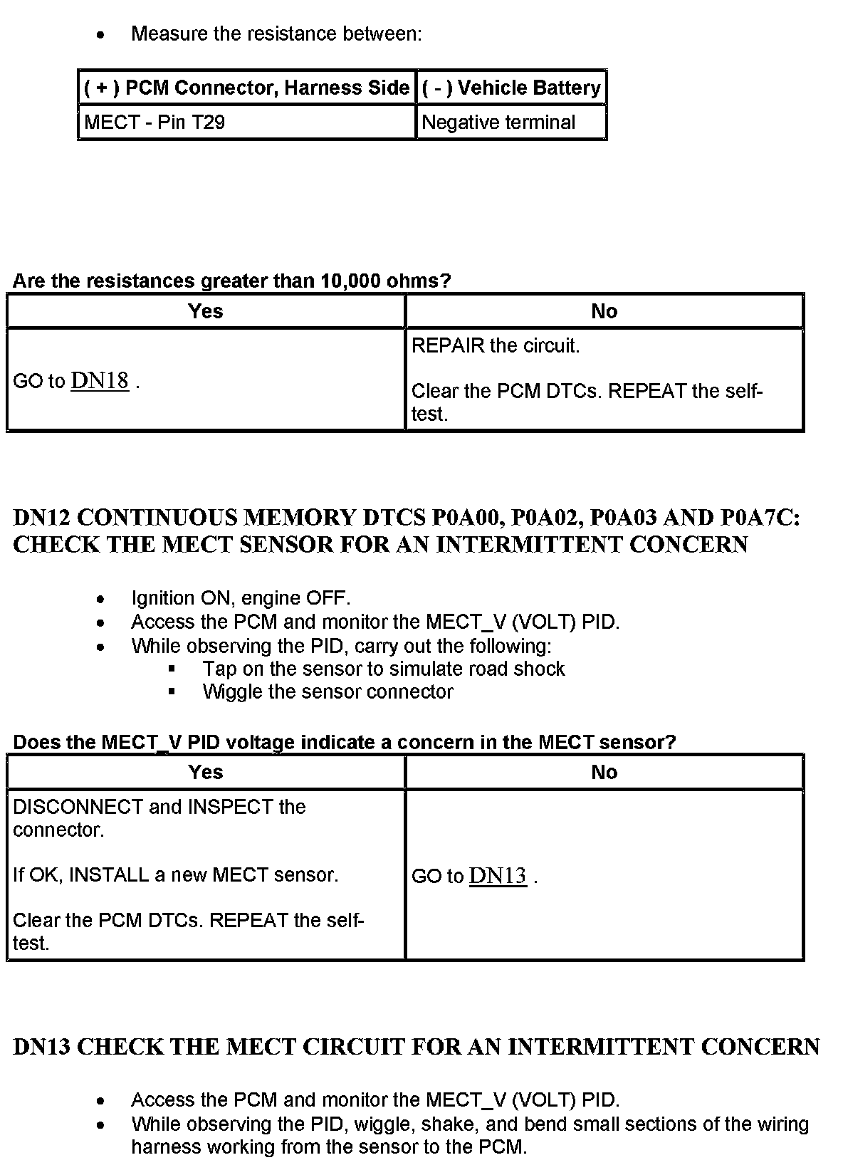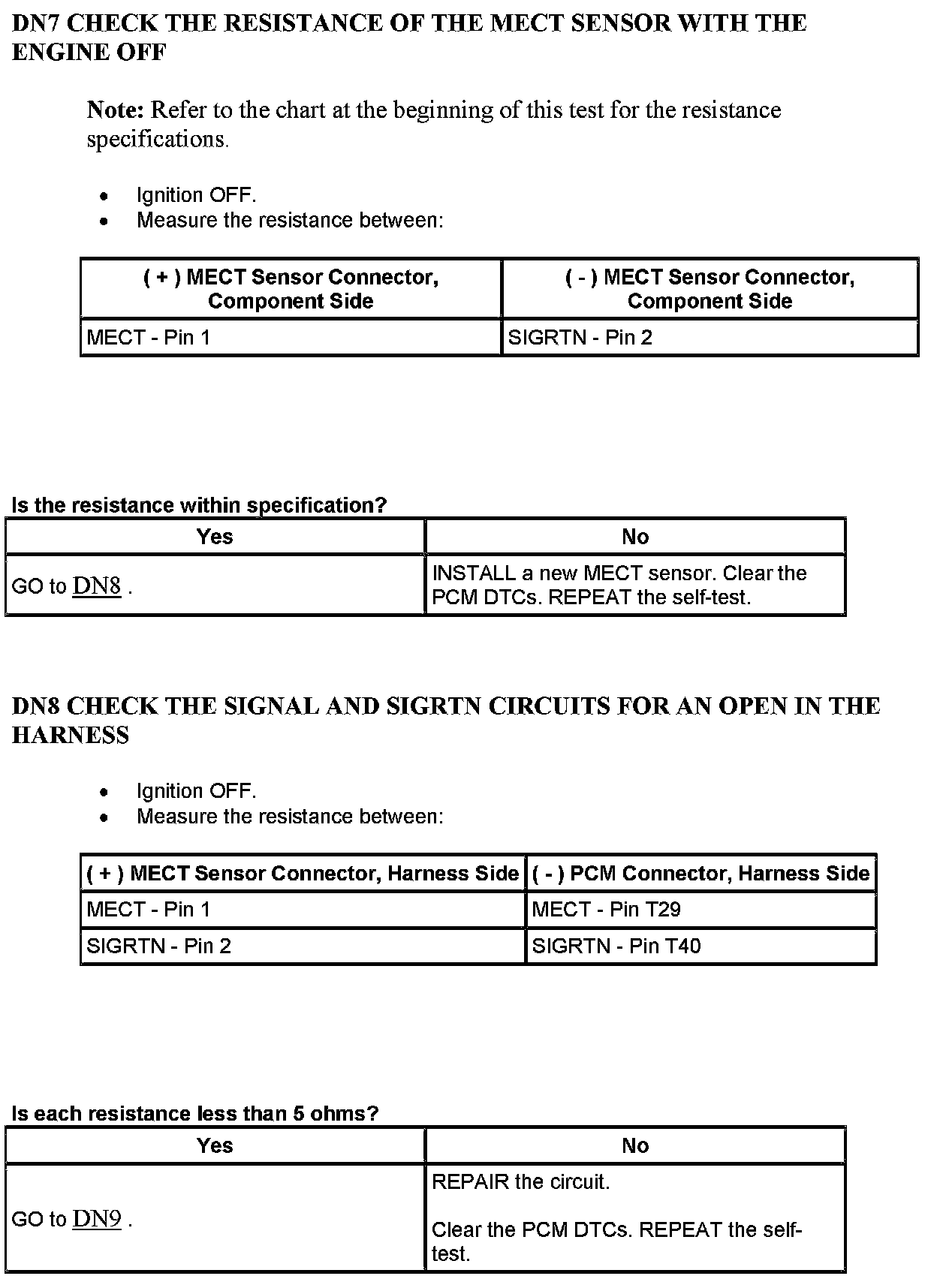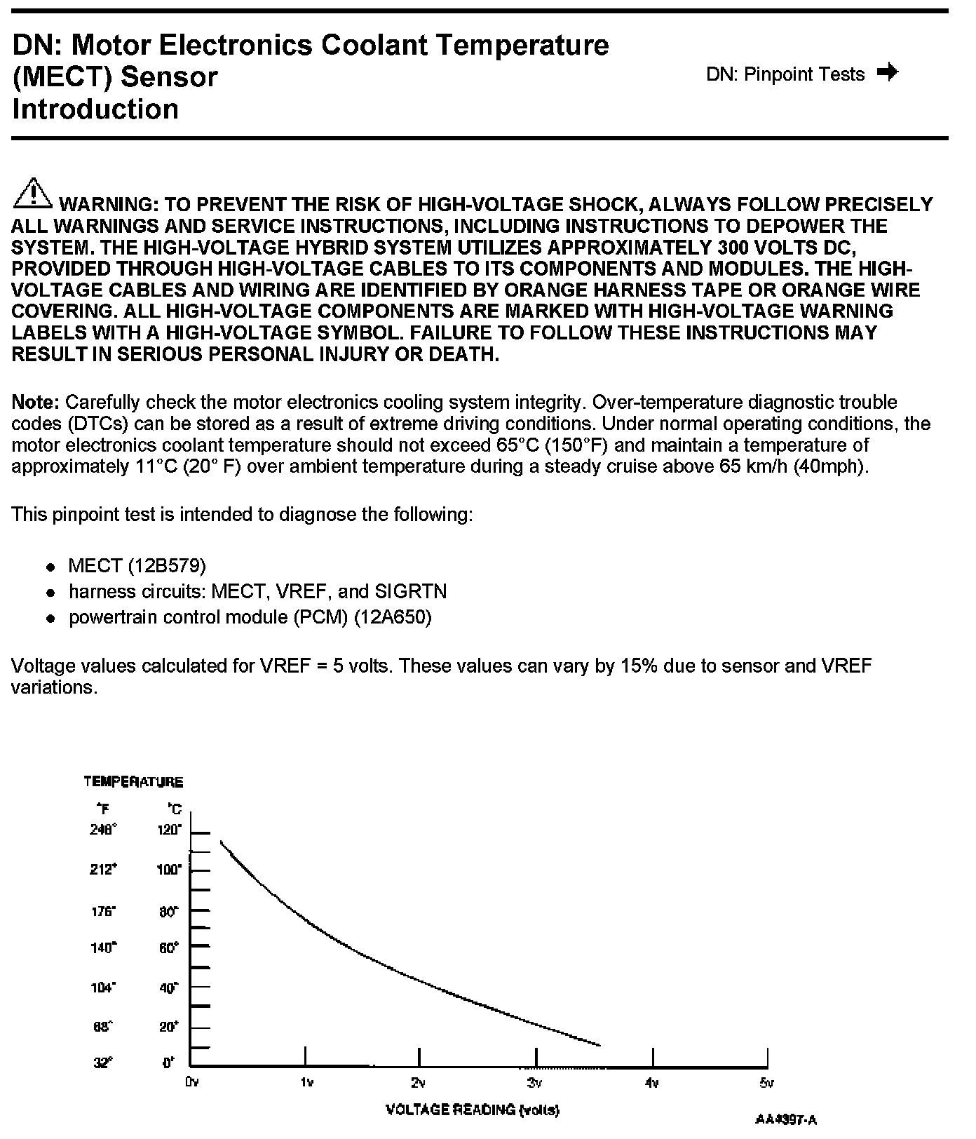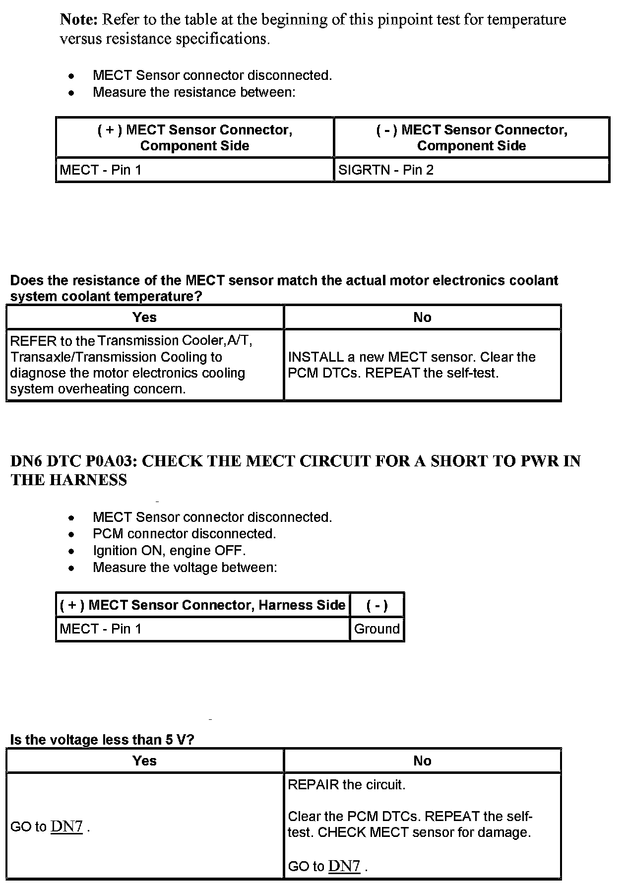 PINPOINT TEST DN: MOTOR ELECTRONICS COOLANT TEMPERATURE (MECT) SENSORWarning And Note: