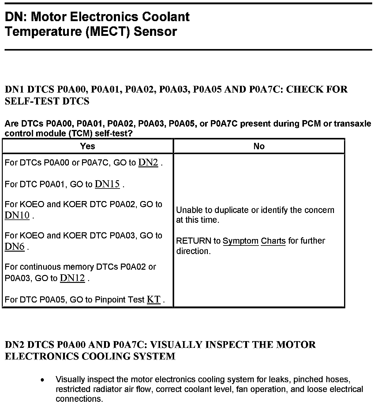 Test DN: Motor Electronics Coolant Temperature (MECT) Sensor