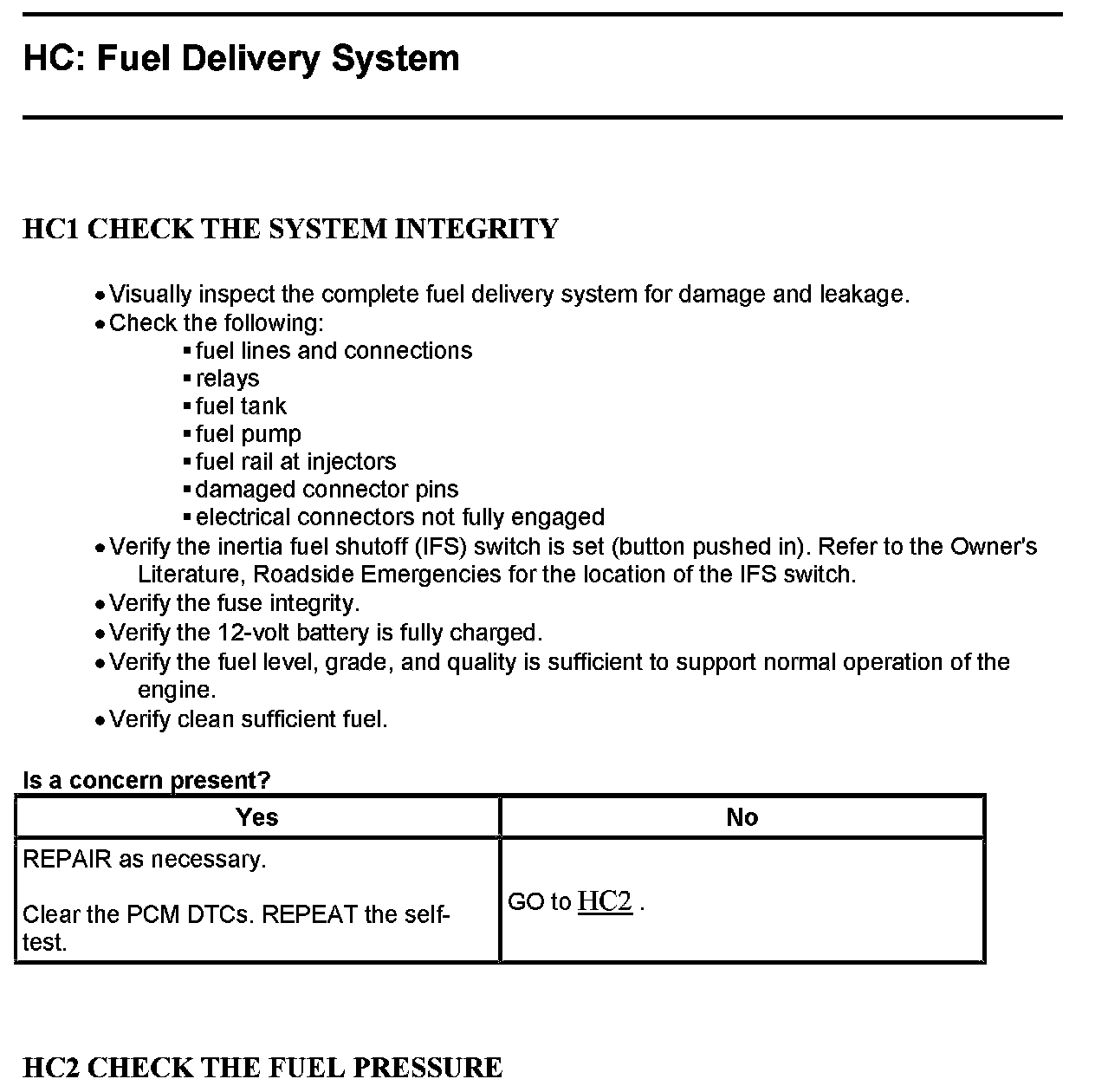 PINPOINT TEST HC: FUEL DELIVERY SYSTEM