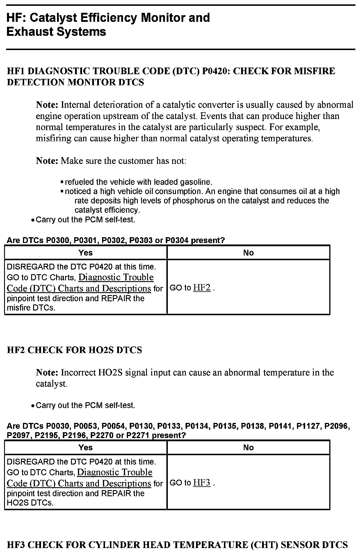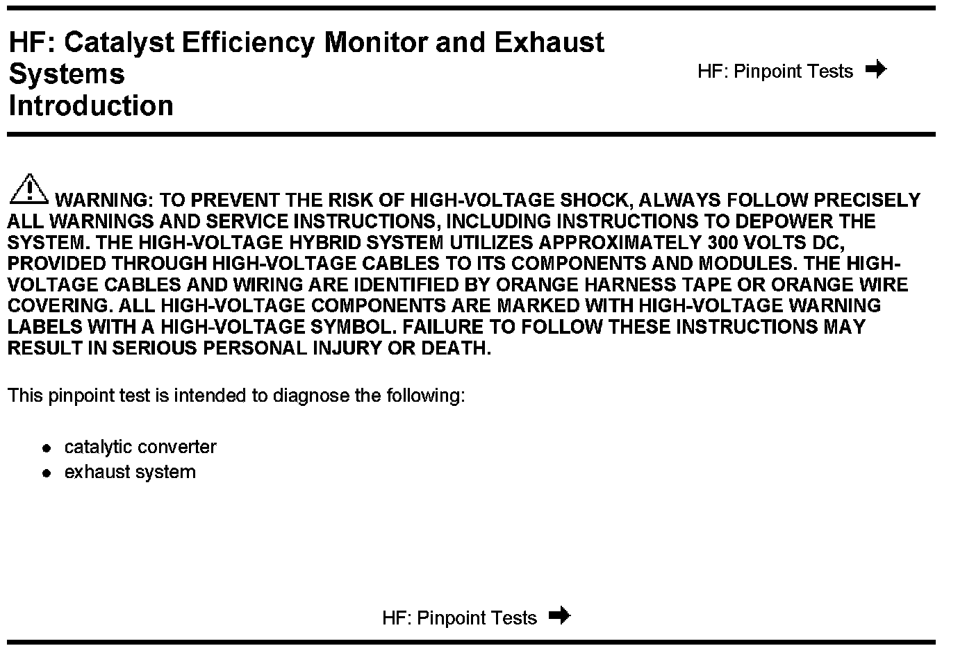 Test HF: Catalyst Efficiency Monitor and Exhaust Systems