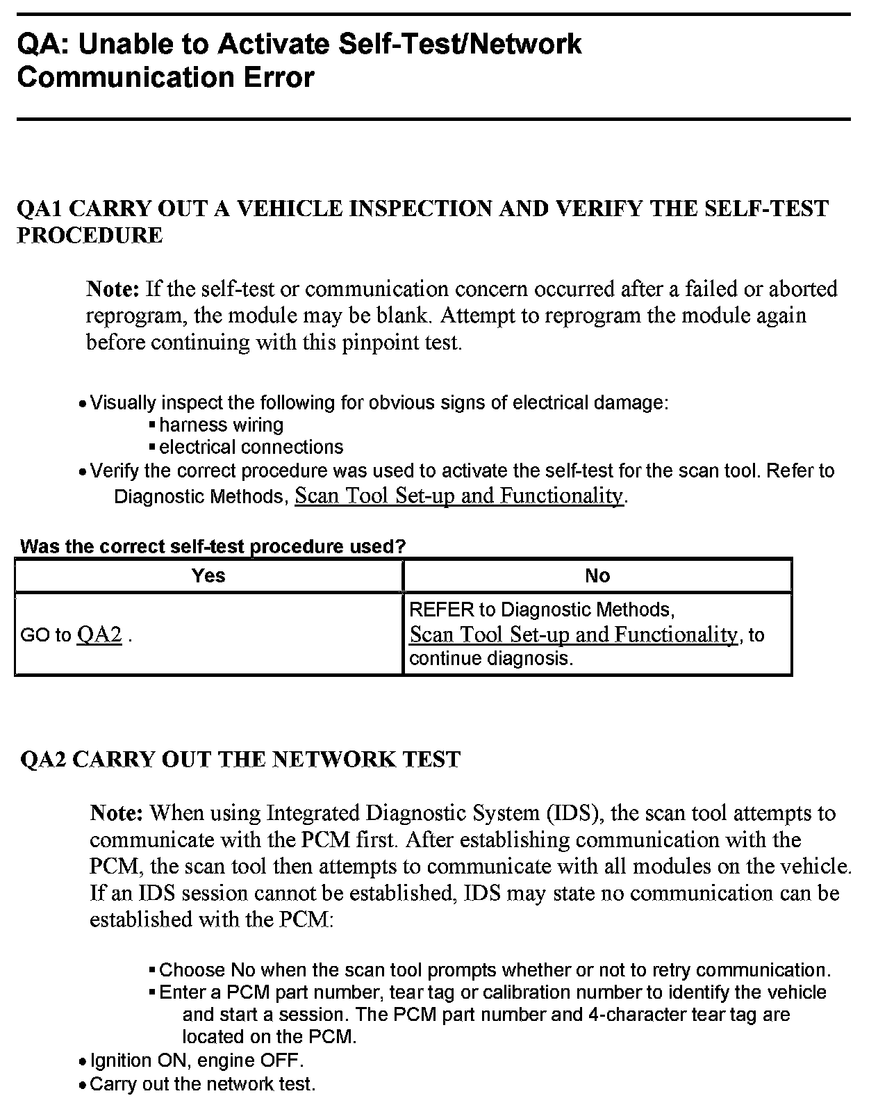 Test QA: Unable To Activate Self-Test/Network Communication Error