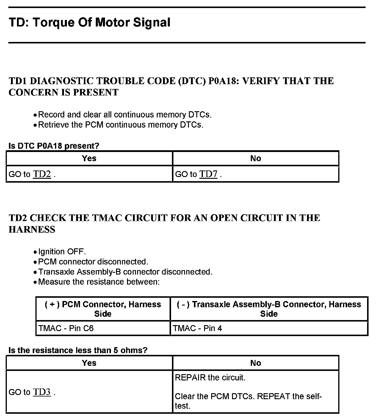 PINPOINT TEST TD: TORQUE OF MOTOR SIGNAL
