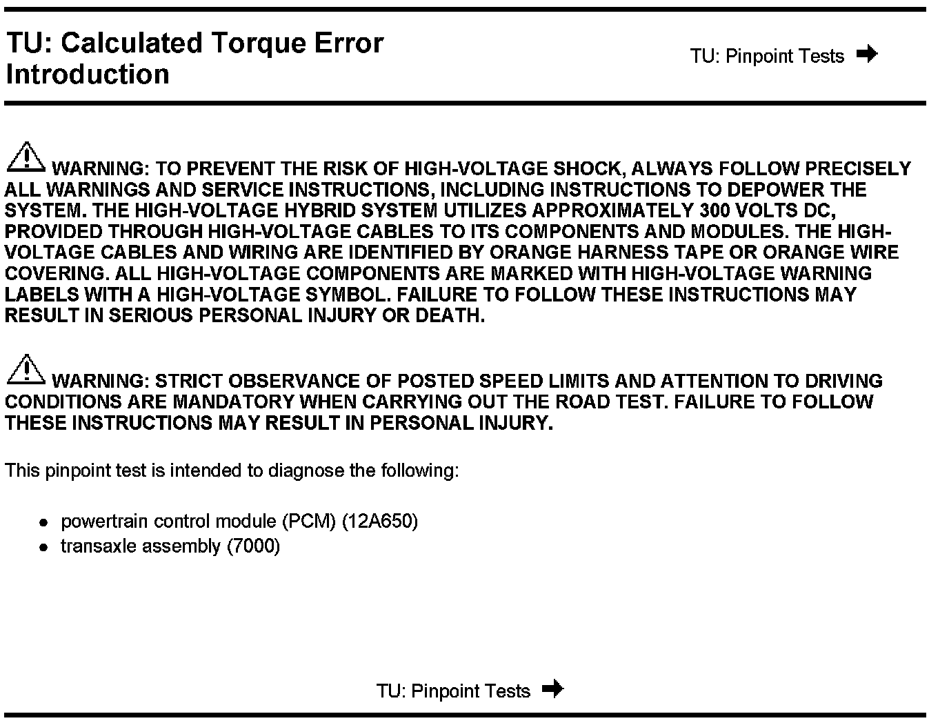 PINPOINT TEST TU: CALCULATED TORQUE ERROR