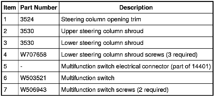5. Disconnect the multifunction switch electrical connector and remove the switch.