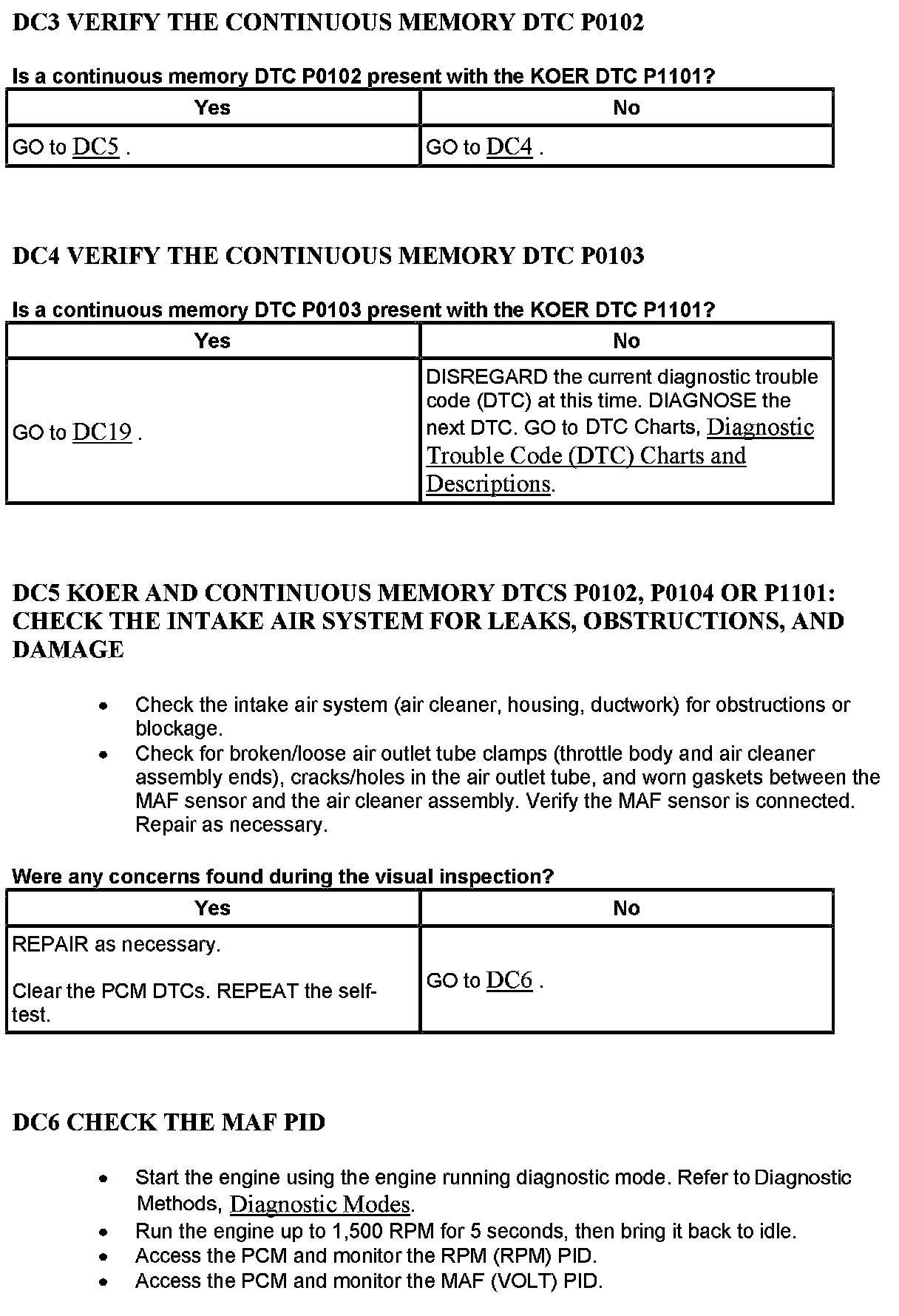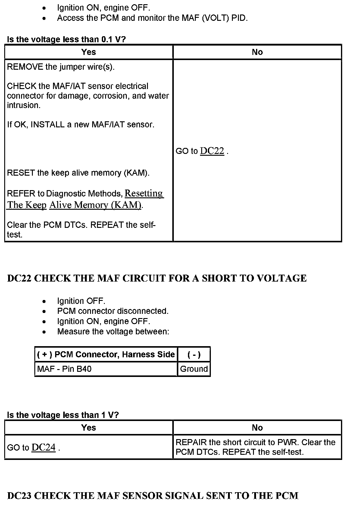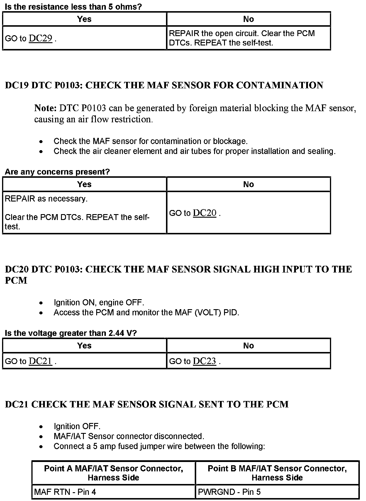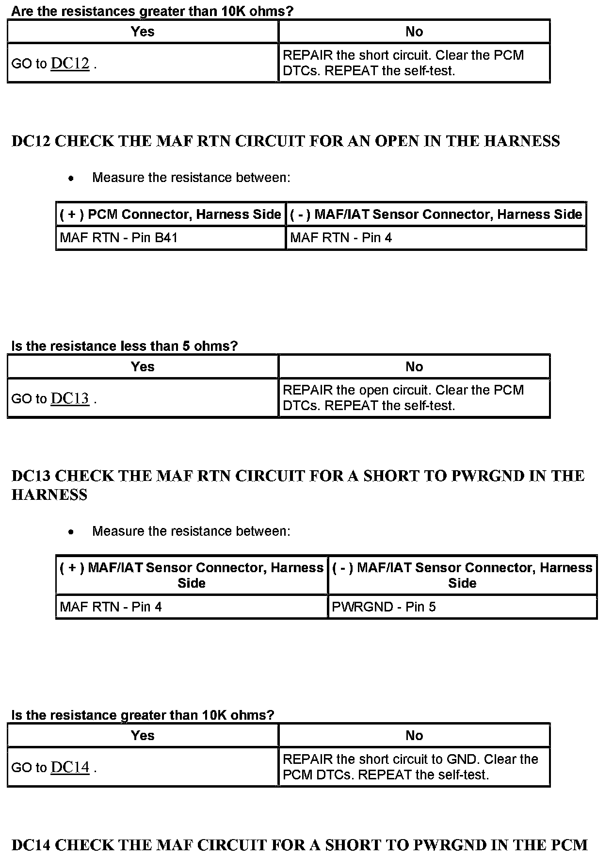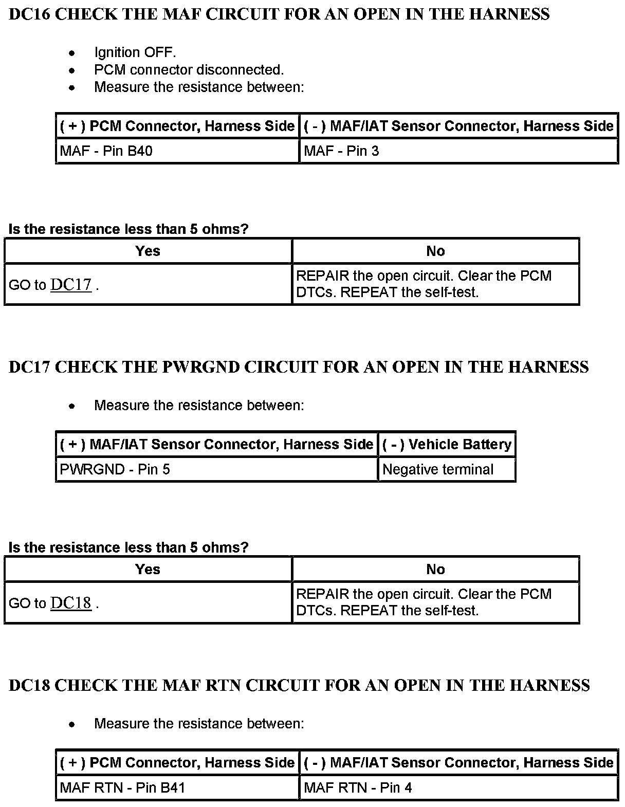 Test DC: Mass Air Flow (MAF) Sensor