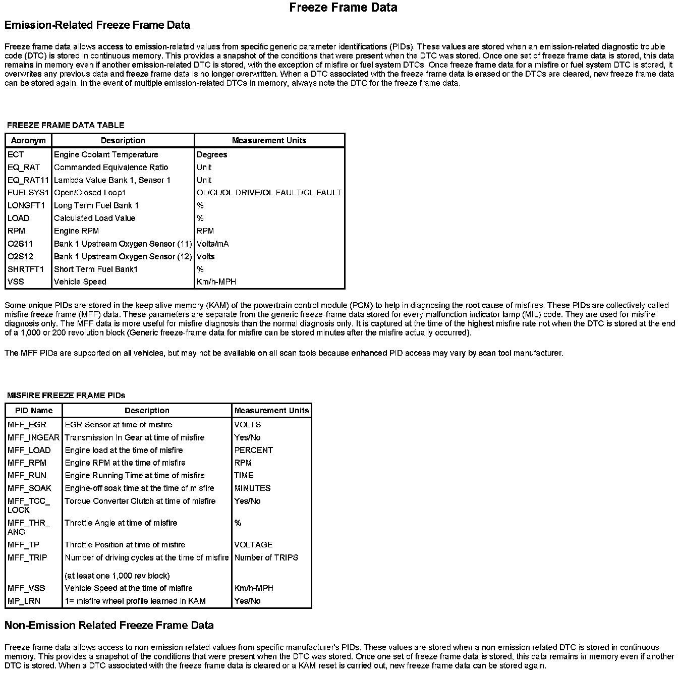 FREEZE FRAME DATA