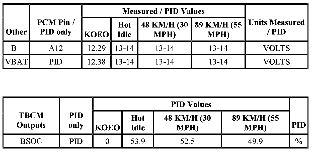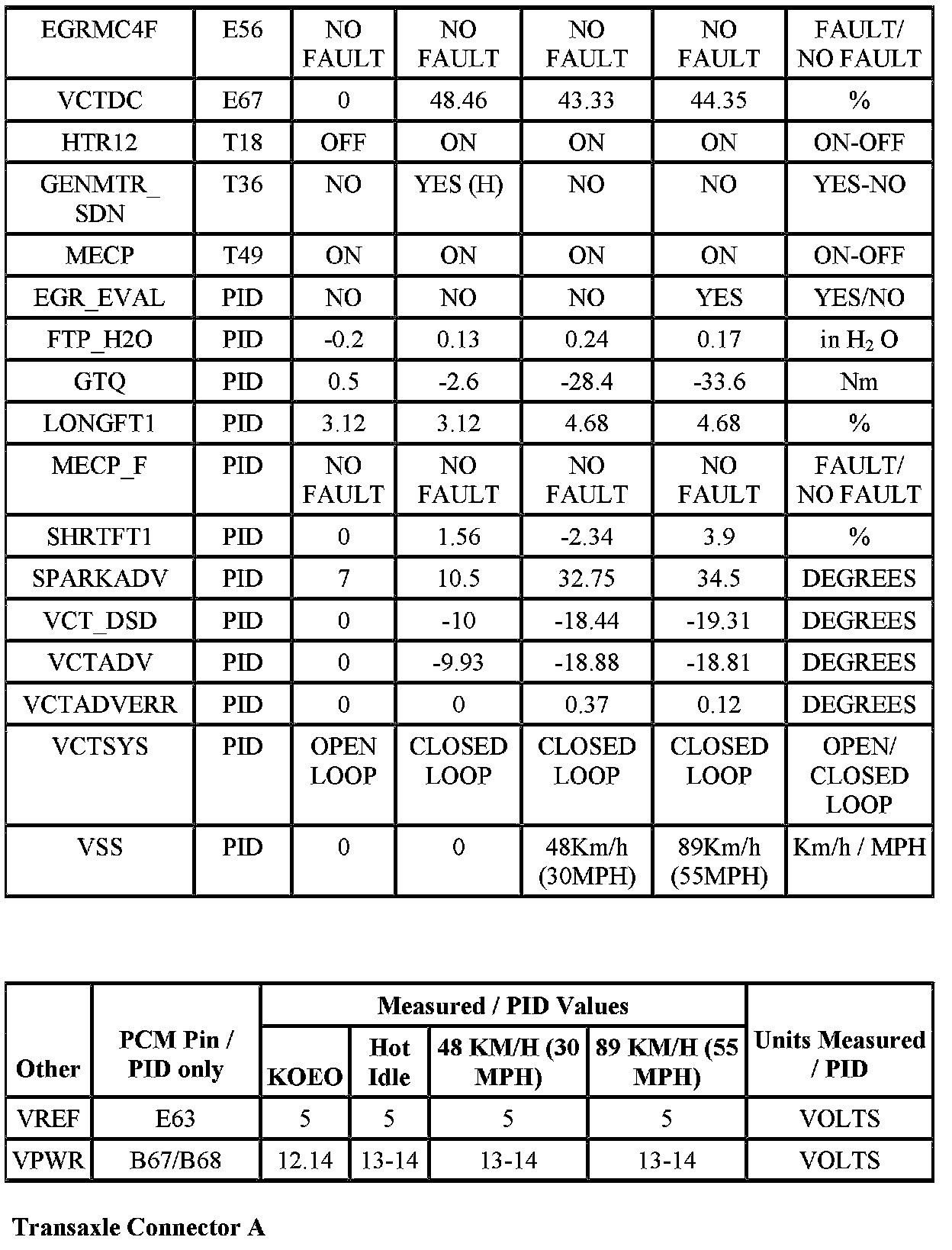 The Typical Diagnostic Reference Value Charts do not display fault parameter identifications (PIDs). These are PIDs which indicate a hard fault with the circuit. They display a value of YES or NO and are PIDs ending with an F.