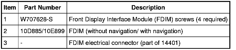 NOTE: Vehicles without navigation require Programmable Module Installation (PMI) when a new module is being installed. For vehicles without navigation, the Front Display Interface Module (FDIM) is not a stand-alone module.
