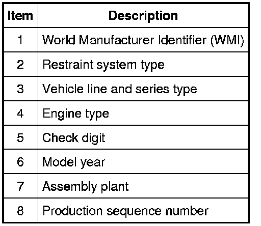 The eighth VIN position is the engine type (displacement and number of cylinders).