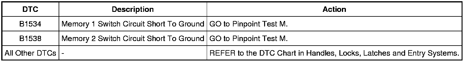 Driver Door Module (DDM) DTC Chart