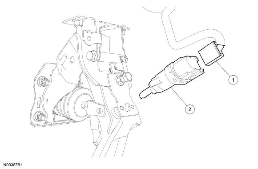 NOTICE: Do not press, pull or otherwise move the brake pedal while removing or installing the stoplamp switch. The switch must be installed with the booster push rod attached to the brake pedal and with the brake pedal in the at-rest position. Installing the switch with the brake pedal in any other position results in incorrect adjustment and damage to the switch.