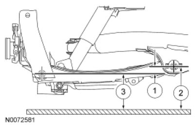 3. Subtract measurement 3 from measurement 2 to obtain the rear ride height.