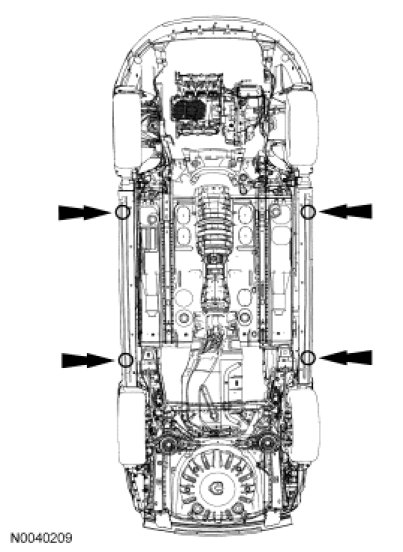 NOTICE: To prevent possible damage to the Sport package trim when lifting with a hoist, position the hoist pad on the pinch weld as indicated.