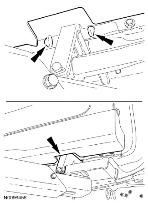 NOTICE: Damage to the suspension, exhaust or steering linkage components may occur if care is not exercised when positioning the hoist adapters prior to lifting the vehicle.