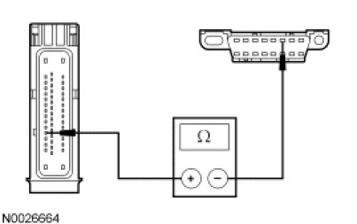 - Measure the resistance between the ABS module C135-13, circuit VDB05 (WH), harness side and the DLC C251-14, circuit VDB05 (WH), harness side.
