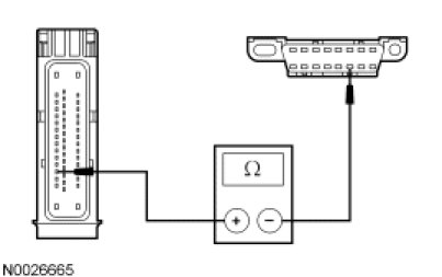 - Measure the resistance between the DLC C251-6, circuit VDB04 (WH/BU), harness side and the DLC C251-14, circuit VDB05 (WH), harness side.