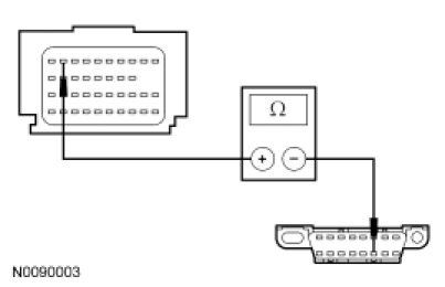 - Measure the resistance between the RCM C310b-9, circuit VDB05 (WH), harness side and the DLC C251-14, circuit VDB05 (WH), harness side.