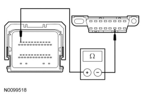 - Measure the resistance between the BECM C4237a-22, circuit VDB04 (WH/BU), harness side and the DLC C251-6, circuit VDB04 (WH/BU), harness side.