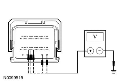 - Measure the voltage between the BECM, harness side and ground as follows: