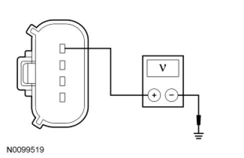 - Measure the voltage between the ACCM C1469a-1, circuit CBK03 (GY), harness side and ground.