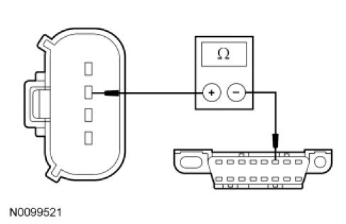 - Measure the resistance between the ACCM C1469a-2, circuit VDB04 (WH/BU), harness side and the Data Link Connector (DLC) C251-6, circuit VDB04 (WH/BU), harness side.