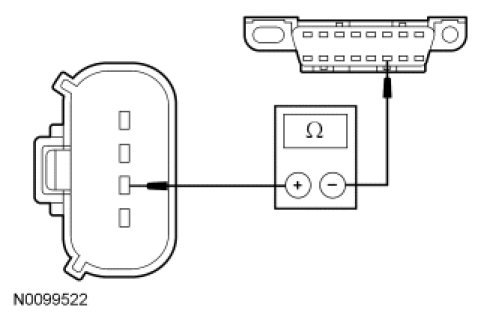 - Measure the resistance between the ACCM C1469a-3, circuit VDB05 (WH), harness side and the DLC C251-14, circuit VDB05 (WH), harness side.