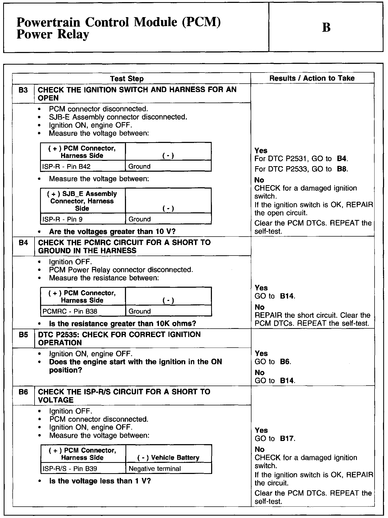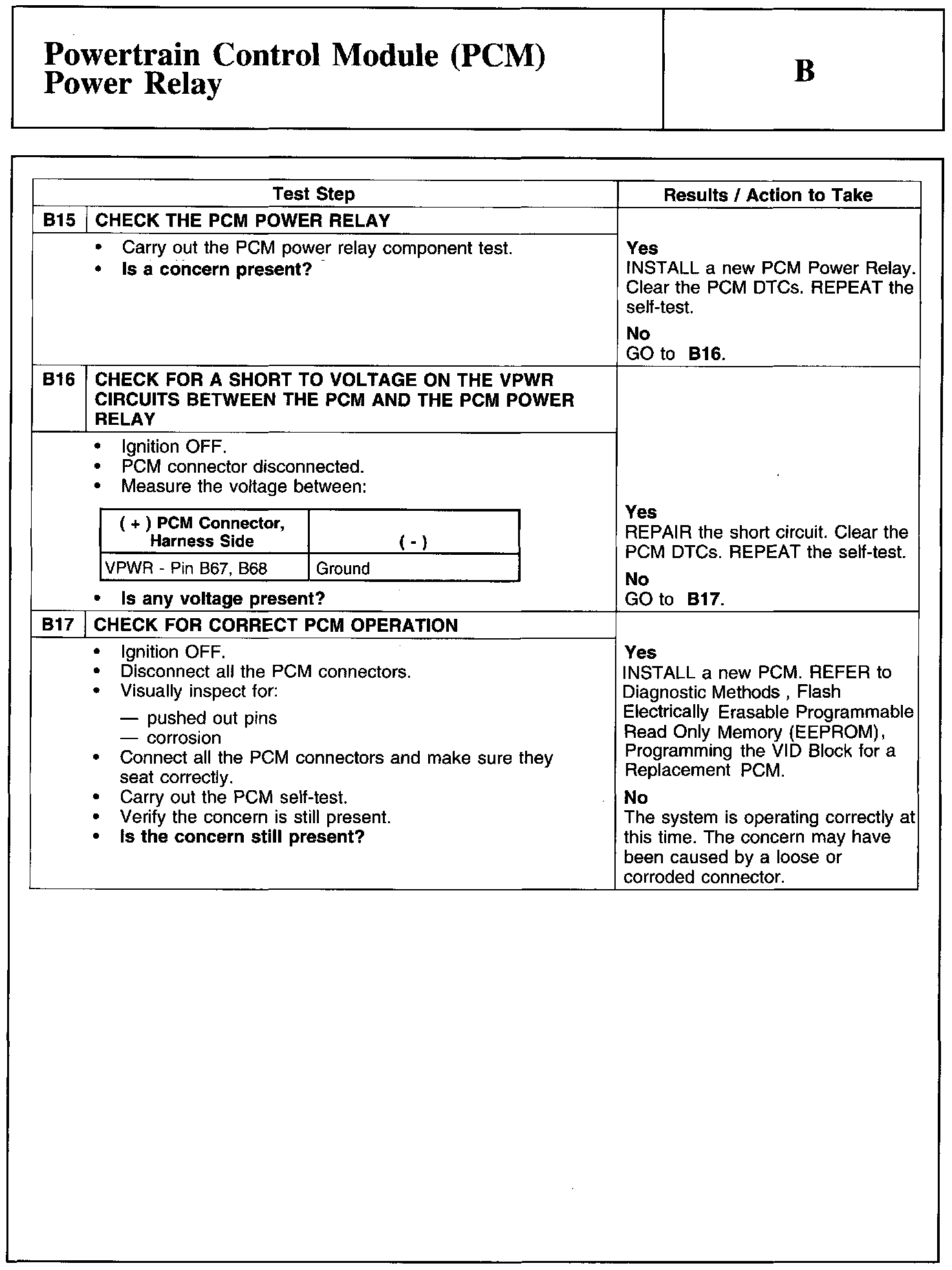 Test B: Powertrain Control Module (PCM) Power Relay