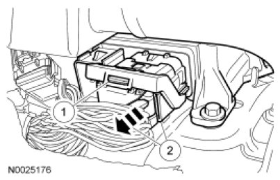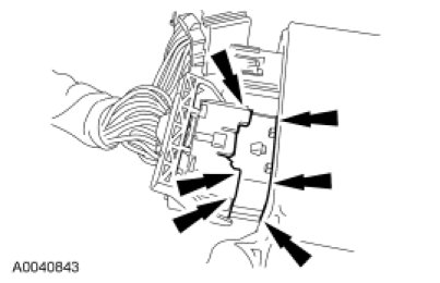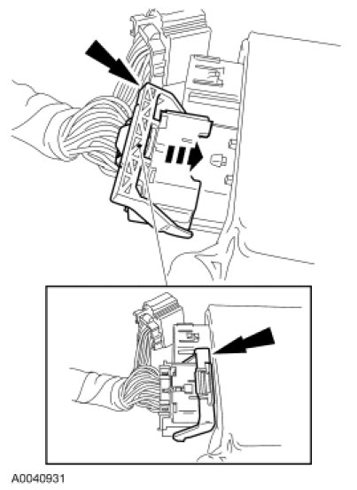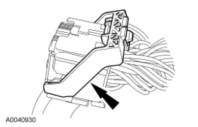 - NOTICE: Do not push the connector such that the Connector Position Assurance (CPA) lever pivots and seats. Use light force to insert the connector into the Restraints Control Module (RCM) before using the CPA lever to lock the connector. Damage to the connector or component may occur.