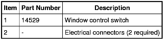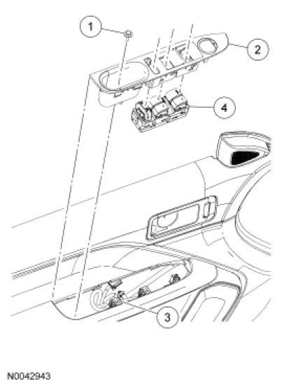 3. NOTE: For LH front window control switch assembly only, the rear retaining clip is located off-center towards the outside of the vehicle.