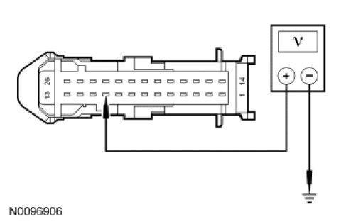 - Measure the voltage between SJB C2280C-10, circuit CPW01 (BN/BU), harness side and ground.