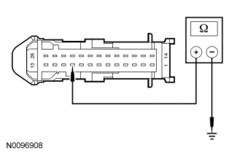 - Measure the resistance between SJB C2280C-10, circuit CPW01 (BN/BU), harness side and ground.
