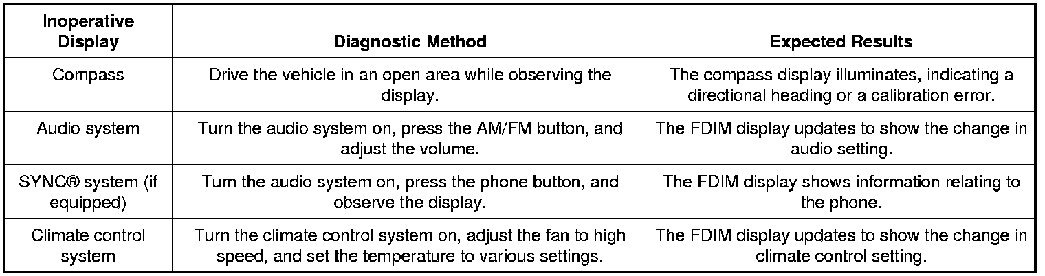 For the compass display, this pinpoint test is intended to diagnose a concern of the compass display being blank. For any other concerns with the compass display, including the compass being inaccurate, refer to Electronic Compass Testing and Inspection.