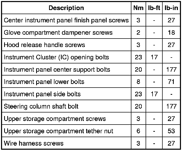 Dashboard / Instrument Panel: Specifications