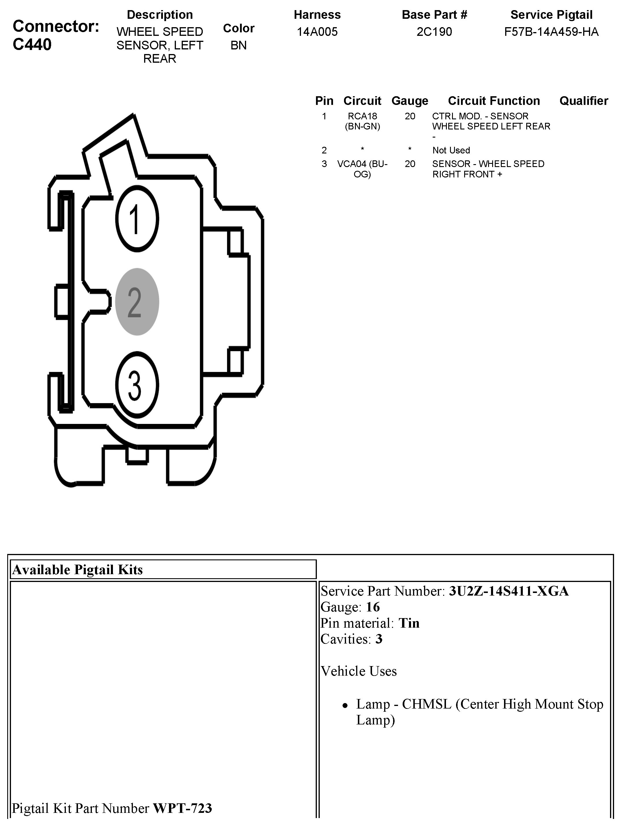 C440 Wheel Speed Sensor, Left Rear