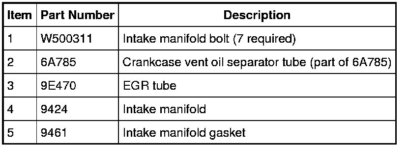 14. Remove the 6 bolts and position the intake manifold aside to access the crankcase vent oil separator tube and the EGR tube.