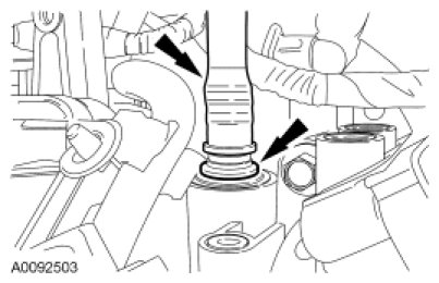 16. Squeeze the 2 crankcase vent oil separator tube tabs and disconnect the tube from the intake manifold.