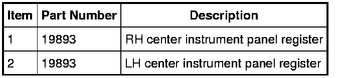 2. Release the clips on each register and remove the 2 center instrument panel registers.